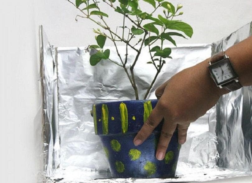 Si vous voulez alimenter vos plantes en lumière de toutes les directions, créez une petite boîte soleil avec du papier d’aluminium. Retirez le dessus et un côté d’une boîte en carton et recouvrez le reste de la boîte avec du papier d’aluminium.